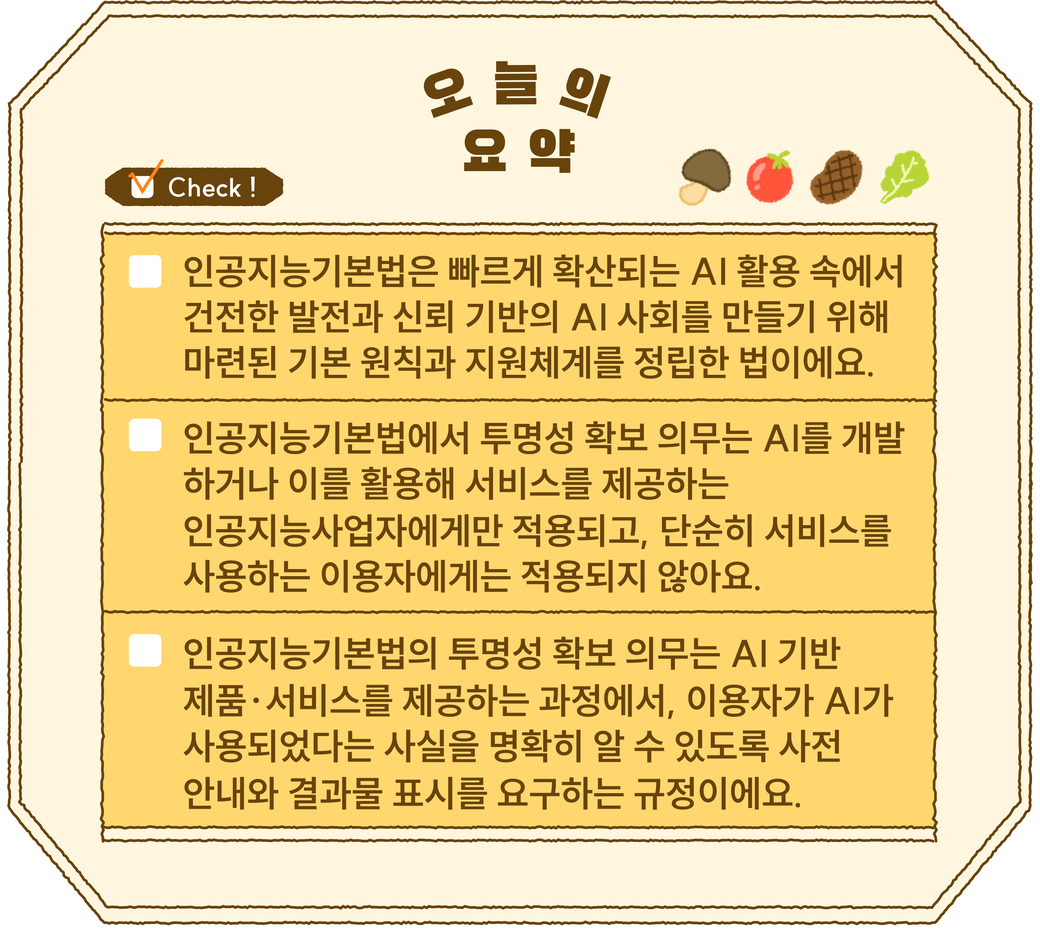 ์ฑ ํ๋ณด ์๋ฌด์ ํต์ฌ์ ์ด์ฉ์๊ฐ ์ง๊ธ ์ฌ์ฉํ๋ ๊ฒฐ๊ณผ๋ฌผ์ด ์ธ๊ณต์ง๋ฅ์ด ์์ฑํ ๊ฒ์ธ์ง๋ฅผ ๋ช